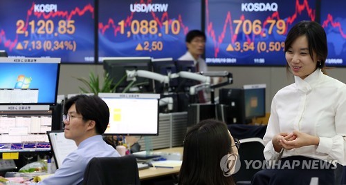 코스피는 전날보다 0.57포인트(0.03%) 오른 2,114.29로 개장한 뒤 등락을 반복하다 외국인이 '사자'로 전환한 뒤 상승세를 유지, 전날보다 7.13포인트(0.34%) 오른 2,120.85로 마감했다.