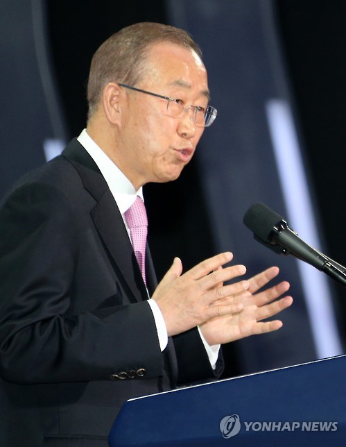 | △ 반기문 유엔 사무총장 축사 (서울=연합뉴스) 백승렬 기자 = 반기문 유엔 사무총장이 20일 서울 동대문디자인프라자에서 열린 서울디지털포럼 2015 개회식에서 축사하고 있다. 2015.5.20 srbaek@yna.co.kr |