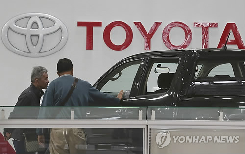 | △ 도쿄의 도요타 매장에서 고객들이 전시 차량을 살펴보고 있다(AP=연합뉴스 자료사진) |