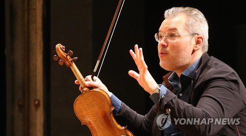 | △ 바이올리니스트들의 '꿈의 수업', 바딤 레핀 마스터클래스 (수원=연합뉴스) 신영근 기자 = 20일 오후 경기도 수원시 팔달구 경기도문화의전당 아늑한소극장에서 세계적 바이올리니스트 바딤 레핀(44)의 1대1 수업인 마스터클래스가 열려 바딤 레핀이 열정적으로 국내 신예 바이올리니스트를 지도하고 있다. 2015.5.20 drops@yna.co.kr |