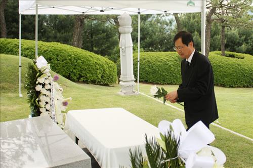 추모식에는 박찬구 금호석유화학그룹 회장, 김성채 금호석유화학 사장, 문동준 금호피앤비화학 부사장, 온용현 금호미쓰이화학 부사장 등 30여명이 참석했다.