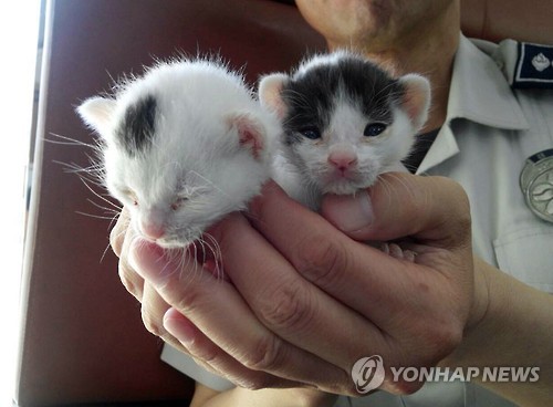 지난 19일 오후 부산 중부경찰서 보수파출소에 눈도 제대로 못 뜨는 새끼 고양이 두 마리가 나타났다.