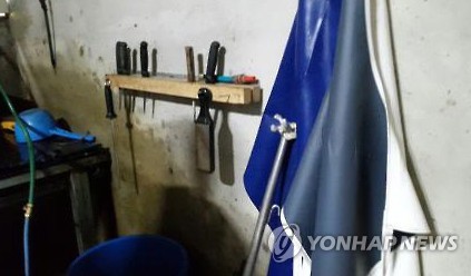 | △ 길고양이 도축장소 모습 (부산=연합뉴스) 차근호 기자 = 부산 북부경찰서는 길고양이 600마리를 잔인하게 도살해 건강원에 판매한 50대 남성을 붙잡았다고 21일 밝혔다. 사진은 이 남성이 길고양이를 도축한 비밀장소의 모습. |