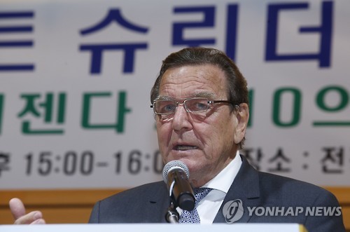 (서울=연합뉴스) 김윤구 기자 = 게르하르트 슈뢰더 전 독일 총리가 앙겔라 메르켈 현 독일 총리에 대해 "내 개혁의 수혜자"라고 말했다.