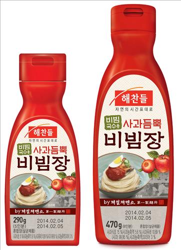 (서울=연합뉴스) 이유미 기자 = CJ제일제당은 여름철 비빔국수 시즌을 겨냥해 '해찬들 사과듬뿍 비빔장'을 출시했다고 22일 밝혔다.