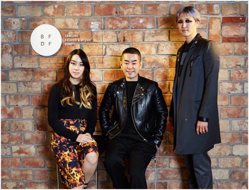 | △ SFDF 3회 연속 수상자인 정욱준 디자이너(가운데), 제10회 수상자인 계한희(왼쪽), 박종우 디자이너가 포즈를 취하고 있다. |