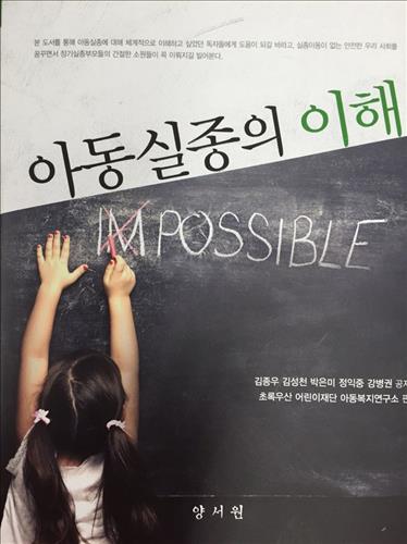 실종아동 전문가들과 교수진이 공동 집필한 이 책은 실종 아동의 개념과 관계 법령, 문제점, 부모의 유형·변화단계, 국내외 관련 정책 등을 종합적으로 소개했다.
