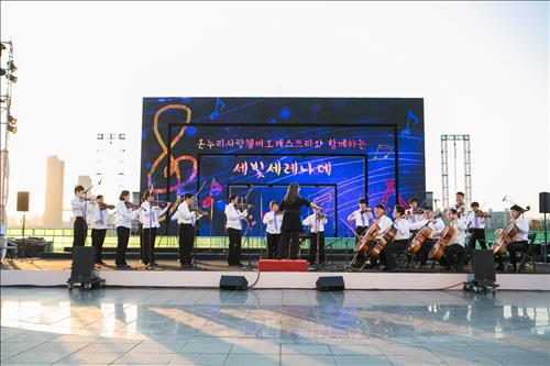 (서울=연합뉴스) 옥철 기자 = 효성[004800]이 후원하는 온누리사랑챔버오케스트라가 23일 저녁 반포 한강공원 내 세빛섬 야외무대(예빛섬)에서 '세빛 세레나데' 연주회를 했다.