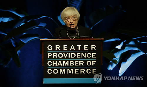 | △ 옐런 "올해 안 어느 시점에 금리 인상" (프로비던스 AP=연합뉴스) 재닛 옐런 미국 연방준비제도(연준) 의장이 22일(현지시간) 미 로드아일랜드주 프로비던스 지역 상공회의소 연설에서 "올해 안 어느 시점에는 연방기금금리 목표치를 높이기 위한 초기 조치에 나서고 통화정책의 정상화 절차를 시작하는 게 적절하다"고 밝히고 있다. 이날 옐런의 발언으로 올 9월 연방공개시장위원회(FOMC) 정례회의 때부터 기준금리 인상에 착수할 것이라는 금융시장 전문가들의 예상에 무게가 실릴 것으로 보인다. marshal@yna.co.k |