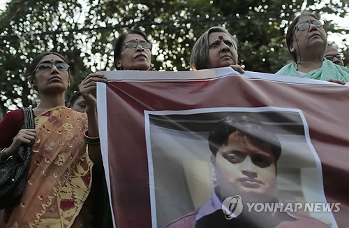 | △ 방글라데시 블로거 잇따른 피살…항의 시위 (다카 AP=연합뉴스) 방글라데시 시민 활동가들이 12일(현지시간) 수도 다카에서, 블로거 '아난타 비조이 다스'가 무장괴한들에게 살해된데 항의해 시위를 벌이고 있다. 방글라데시 경찰은 이날 다스가 북동부 실헤트 시에서 얼굴을 가린 채 칼로 무장한 테러범들의 칼에 찔려 살해했다고 밝혔다. 다스는 방글라데시계 미국인 블로거 로이가 운영하던 웹사이트에 이슬람 극단주의를 비판하는 글을 올려왔다. 로이도 지난 2월 다카 대학에서 열린 도서전시회에 참석했다 귀가하는 길에 살해됐다. kjw@yna.co.kr |