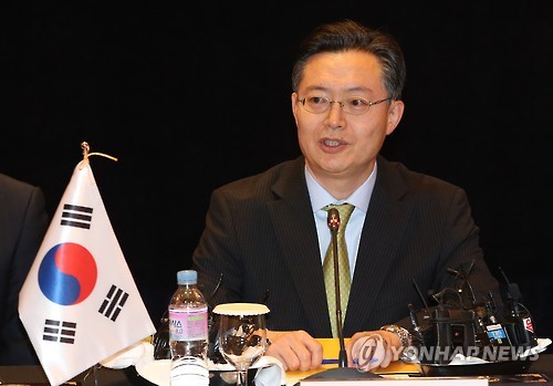 | △ 모두발언하는 황준국 한반도평화교섭본부장 (서울=연합뉴스) 임헌정 기자 = 황준국 외교부 한반도평화교섭본부장이 27일 서울 소공동 롯데호텔에서 열린 한·미·일 북핵 6자회담 수석대표 회의에서 모두발언을 하고 있다. kane@yna.co.kr |
