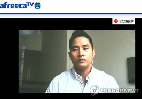 | △ 유승준, 인터넷 생중계 두번째 방송 (서울=연합뉴스) 가수 겸 배우 유승준(39)이 지난 인터넷 생중계 이후 변명으로 일관했다는 비난와 거짓 해명이라는 논란이 일자 27일 오전 아프리카TV를 통해 2차 방송에 나섰다. (아프리카TV 방송화면 캡처) |