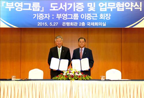 (서울=연합뉴스) 박인영 기자 = 부영그룹은 이중근 회장이 27일 '6·25 전쟁 1129일' 요약본 100만 권을 새마을운동중앙회에 기증했다고 밝혔다.