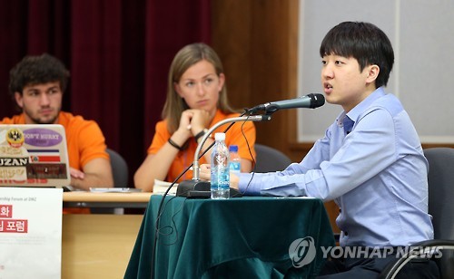 세계 25개국에서 온 청소년들은 남북한 간 비무장지대(DMZ) 바로 앞에서 '세계 평화 위협요소와 해결기구'라는 주제로 열띤 토론을 벌였다.