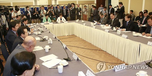 | △ 통신시장 경쟁촉진 당정협의 (서울=연합뉴스) 이상학 기자 = 최양희 미래창조과학부 장관이 28일 오전 국회에서 열린 통신시장 경쟁촉진 당정협의에서 모두발언을 하고 있다. 2015.5.28 leesh@yna.co.kr |