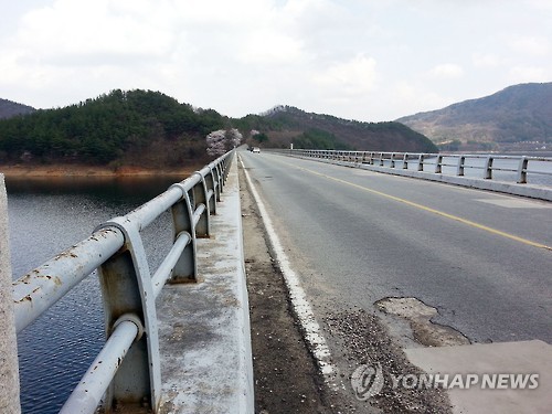 | △ '자살 다리' 오명 쓴 청주 문의대교 (청주=연합뉴스) 박재천 기자 = 투신자살 사건이 끊이지 않아 '자살 다리'라는 오명을 쓰게 된 충북 청주시 문의면의 문의대교. 청주시는 문의대교를 '생명의 다리'로 바꾸기로 하고 난간 사이의 틈을 아크릴이나 알루미늄으로 막고, 여기에 감성적인 그림과 글을 새겨 넣는 방안을 검토하고 있다. 2015.5.28 jcpark@yna.co.kr |