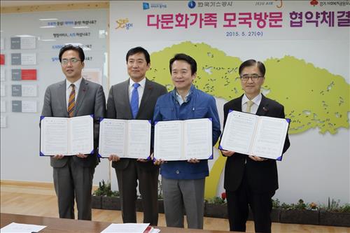 (서울=연합뉴스) 이웅 기자 = 한국가스공사[036460] 경기지역본부가 경기도, 제주항공과 '다문화가족 모국방문 지원사업' 추진을 위한 업무협약을 맺었다고 28일 밝혔다.