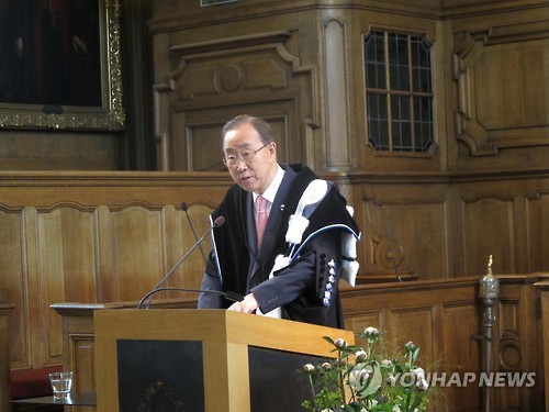 반 총장은 28일(현지시간) 벨기에 루뱅대학교에서 거행된 명예박사 학위 수여식 연설에서 대학생 등 젊은이들에게 '글로벌 비전을 가진 세계 시민'이 될 것을 주문했다.