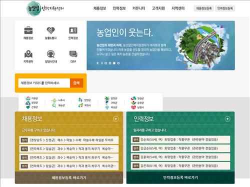 (세종=연합뉴스) 김아람 기자 = 농림축산식품부는 농산업 구인·구직 정보를 제공하는 농산업인력지원센터 홈페이지(www.agriwork.kr)를 연다고 29일 밝혔다.