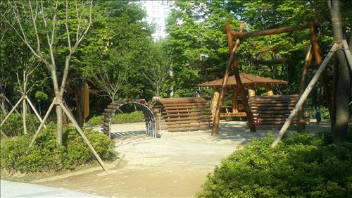 구는 '아이뜨락'으로 이름붙인 생태놀이터에 기존 놀이터의 획일화된 놀이시설을 최대한 배제하고 나무, 자갈, 흙 등 자연소재의 움막과 그늘터널 등 비정형화된 놀이요소를 도입해 어린이들이 자연 속에서 어우러져 놀 수 있는 환경을 조성했다.