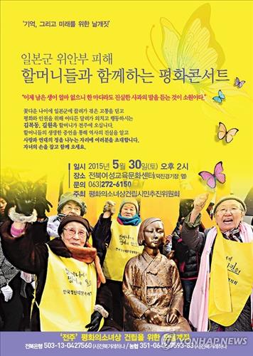 30일 오후 2시에는 전주시 전북여성교육문화센터에서 '일본군 위안부 피해 할머니들과 함께하는 평화콘서트'가 열린다.