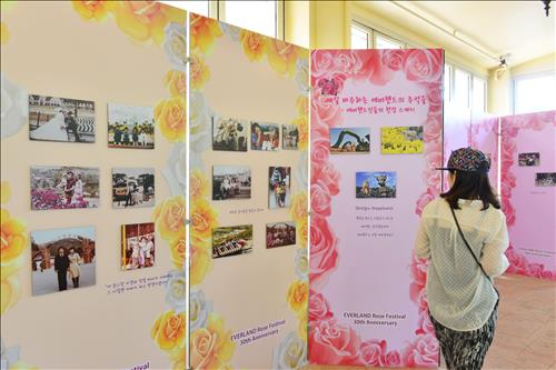 올해 장미축제 30주년을 맞아 SNS(교호네트워크서비스)에서 모집한 추억의 가족사진을 장미원에 특별 전시하는 '에버랜드 추억 사진전'을 열고 있다.
