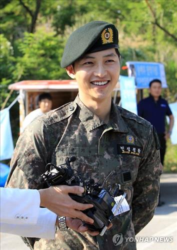 송중기는 지난 26일 강원도 고성군 22사단에서 전역 신고를 하고 부대 앞에서 국내외에서 몰려든 팬들을 만났다.