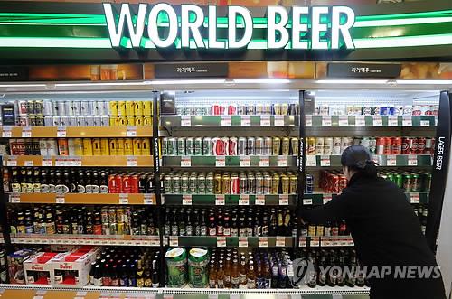 | △ 서울시내 대형마트 수입맥주 코너에서 점원이 상품을 정리하고 있다. 2015.2.27 <연합뉴스 자료사진> |