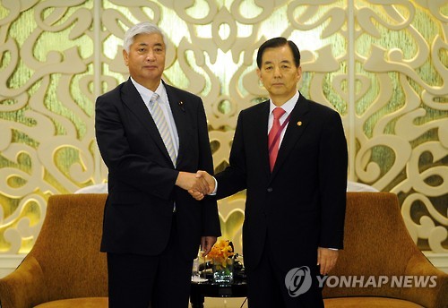 한민구 국방장관과 나카타니 겐(中谷元) 일본 방위상은 30일 싱가포르에서 양자 회담을 하고 한반도 지역에서 일본 자위대의 집단자위권 행사 때 한국 정부의 요청과 동의가 필요하다는 원칙에 합의하고 세부적인 논의를 위한 실무협의를 진행키로 했다.