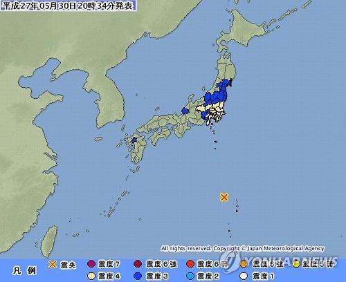 (도쿄=연합뉴스) 조준형 특파원 = 일본 기상청은 31일, 전날 오후 8시24분께 도쿄도(東京都) 남쪽 오가사와라(小笠原)제도 인근에서 발생한 강진의 규모를 최초 발표한 8.5에서 8.1로 수정했다.