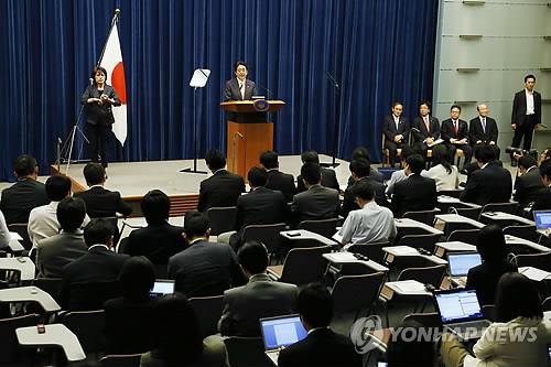 | △ 기자회견하는 아베 총리(교도.연합뉴스.자료사진) |
