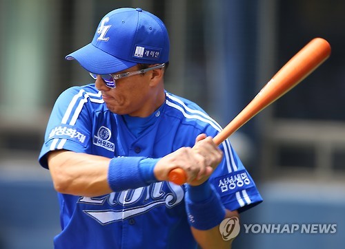 | △ 400호 대기록을 앞둔 이승엽 (서울=연합뉴스) 김도훈 기자 = 31 오후 서울 잠실야구장에서 열린 2015 프로야구 LG 트윈스와 삼성 라이온즈의 경기 시작에 앞서 삼성 이승엽이 스윙 연습을 하고 있다. 이승엽은 전날 LG와의 경기에서 솔로 홈런을 터뜨려 KBO 통산 400호 홈런 대기록에 단 한 개만을 남겨 놓고 있다. 2015.5.31 2015.5.31 superdoo82@yna.co.kr |