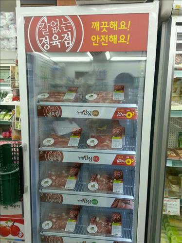칼 없는 정육점은 냉장 진열장을 설치할 1.5㎡ 공간만 확보하면 동네 슈퍼 등에서도 고기를 팔 수 있는 무인 정육 유통 경로다.