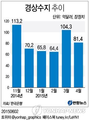 한국은행이 2일 발표한 국제수지 잠정치를 보면 올 4월의 경상수지 흑자는 81억4천만 달러로 작년 같은 달보다 13.7% 늘었다.