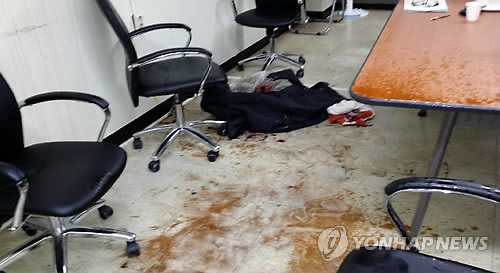 | △ 지난해 12월 5일 황산이 뿌려진 경기도 수원시 영통구 수원지검 형사조정실 사건 현장 (연합뉴스 자료사진) |