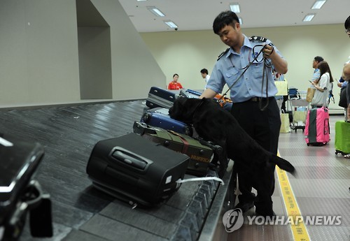 (대구=연합뉴스) 한무선 기자 = 대마초를 밀반입하려다 삼킨 30대 남성이 공항에서 마약탐지견의 냄새 탐지로 세관에 적발됐다.