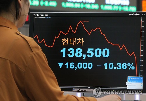 (서울=연합뉴스) 임수정 기자 = 삼성전자[005930]와 함께 한국 경제를 이끄는 쌍두마차인 현대차[005380]가 2일 하루 만에 10% 이상 급락하며 시장에 충격을 줬다.