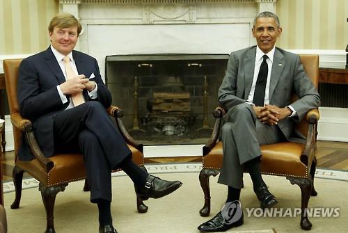 | △ 빌럼 알렉산더 네덜란드 국왕(왼쪽)과 버락 오바마 미국 대통령(EPA=연합뉴스 자료사진) |
