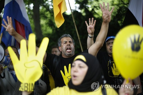 4일(현지시간) 이집트 언론에 따르면 엘시시 대통령이 전날 앙겔라 메르켈 독일 총리와 함께 기자회견을 한 독일 베를린 총리실 주변에는 시민단체 회원 등 수십명이 모여 엘시시에 반대하는 시위를 개최했다.