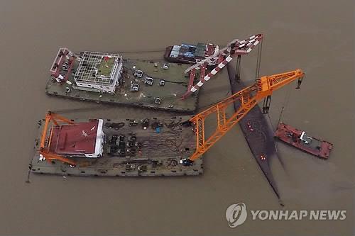 (젠리현<후베이성>·상하이=연합뉴스) 이준삼 한승호 특파원 = 중국 양쯔(揚子)강 유람선 침몰사고가 발행한 지 5일로 닷새째로 접어든 가운데 중국당국이 본격적인 선체 인양과 배상 준비 등에 들어갔다.