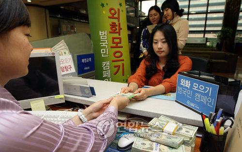 한국은행이 5일 발표한 '5월 말 거주자 외화예금 현황' 통계를 보면 달러화 예금과 위안화 예금 등 거주자 외화예금 잔액은 지난달 말 현재 647억5천만 달러로 4월 말보다 32억9천만 달러 감소했다.