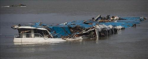 중국정부는 이날 후베이(湖北)성 젠리(監利)현에서 가진 합동기자회견에서 "전날 밤부터 인양 장비를 설치해 이날 오전 9시 6분께 선박 전체를 인양했다"고 밝혔다.