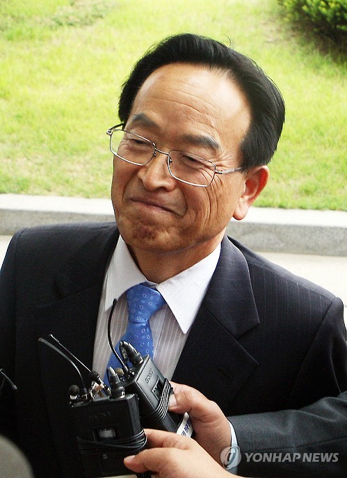 | △ 임각수 괴산군수 전격 구속 (청주=연합뉴스) 전창해 기자 = 5일 임각수 충북 괴산군수가 불법 정치자금과 뇌물을 수수한 혐의(특가법상 뇌물수수 등)로 전격 구속됐다. 사진은 이날 영장실질심사를 받기 위해 법원에 출두한 임 군수. 2015.6.5 jeonch@yna.co.kr |