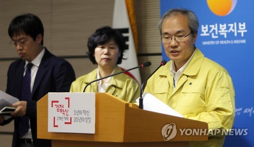| △ "국내 유입 메르스 변이 없어" (대전=연합뉴스) 양영석 기자 = 권준욱 보건복지부 중동호흡기증후군(메르스)관리대책본부 기획총괄반장이 6일 정부 세종청사에서 열린 메르스 관련 정례브리핑에 참석해 국내에 유입된 메르스 바이러스가 변이되지 않은 사실을 발표하고 있다. |