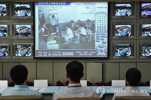 | △ 2013년 중국 대입 시험에서 부정행위를 막기 위해 교사들이 화면을 통해 학생들을 감시하는 모습 (EPA=연합뉴스 자료사진) |
