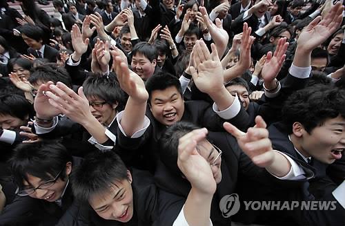 | △ 2012년 2월, 일본의 대학생들이 취업시즌을 맞아 도쿄의 히비야 공원에서 열린 행사에서 박수를 치는 모습.(AP.연합뉴스.자료사진) |