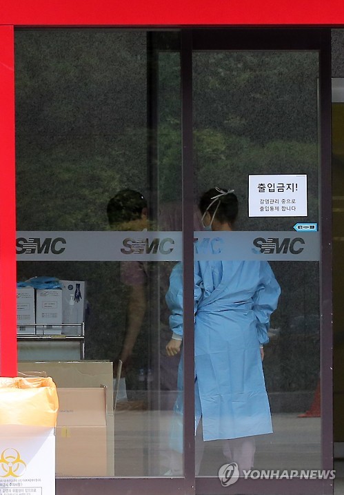 | △ 감염관리 중! (서울=연합뉴스) 이정훈 기자 = 정부가 메르스 병원명단을 공개한 7일 오전 서울 일원동 삼성서울병원의 폐쇄된 응급실 출입구 앞으로 병원 관계자들이 분주하게 이동하고 있다. 2015.6.7 uwg806@yna.co.kr |