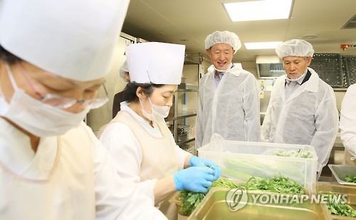 허 회장은 주방의 국산 식재료 사용 현황을 살펴보고 삼성웰스토리 관계자에게 국산 농축산물 구매 비중을 늘려 직원 건강도 챙기고 농가의 소득을 높이도록 하자고 당부했다.