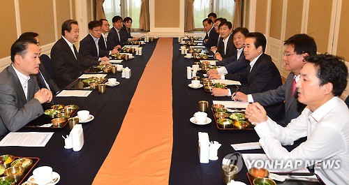 간담회에는 김무성 새누리당 대표를 비롯해 이진복, 나성린 의원 등 지역 국회의원 13명과 서병수 부산시장이 참석했다.