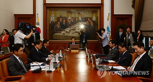 | △ '1.75% 기준금리' 향방은? (서울=연합뉴스) 김주성 기자 = 이주열 한국은행 총재가 15일 오전 서울 중구 한국은행에서 현재 연 1.75%인 기준금리 조정 안건을 심의하기 위한 금융통화위원회의를 주재하고 있다. 2015.5.15 utzza@yna.co.kr |